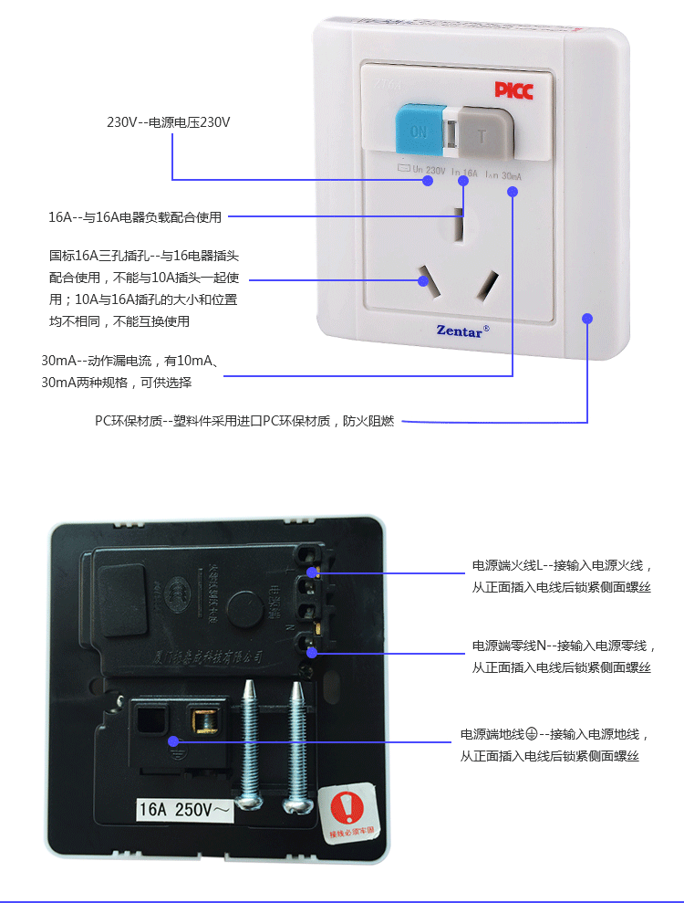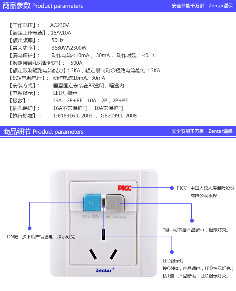 漏電保護(hù)墻壁型開(kāi)關(guān)ZT6-10A/16A